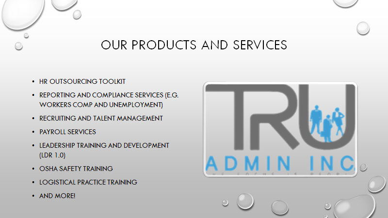 TRU- ADMIN INC is currently a full service administrations company that focus on the Human Resource Management of any size company.
